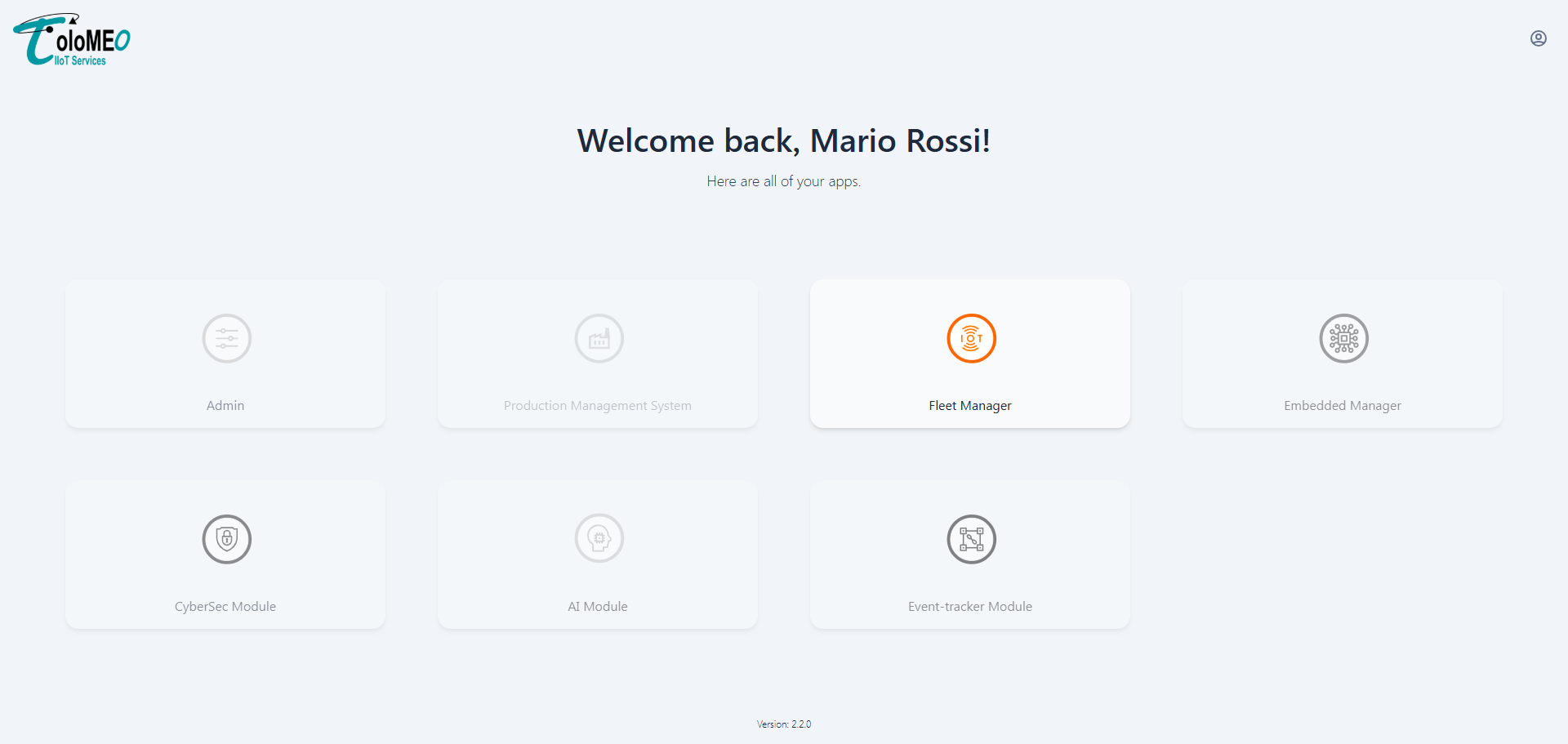 The Fleet Manager provides real-time monitoring and control of all provisioned devices belonging to a customer. It gives operators a live view of the fleet's connectivity status, firmware versions, telemetry data, and alarms, as well as the ability to send commands directly to individual devices.