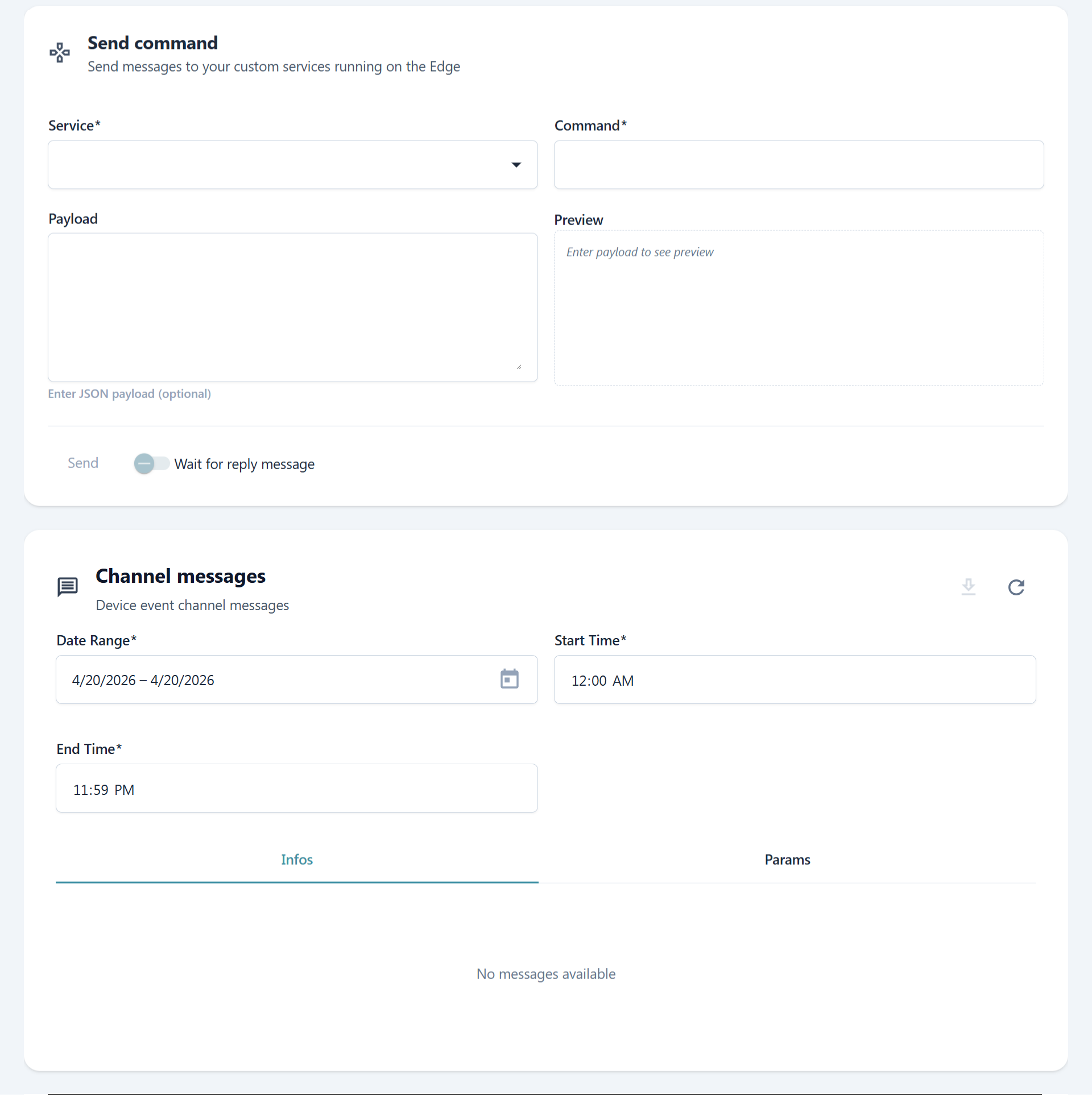 Commands can be sent from the Control panel in Fleet Manager and their responses are displayed there.